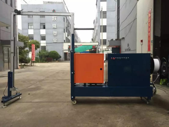 MH-107B自動托盤穿箭打包機是一款專門針對于棧板捆包而設計的一款打包機,該機具有伸縮性導軌,當機器檢測到與物品需要打包時,導軌會自動伸出,與原有的框架形成一個封閉式的帶道,之后進行自動打包,當一道作業完成之后,導軌會自動退回到打包機機身下面,然后由輸送設備將物品輸送到下一工位。