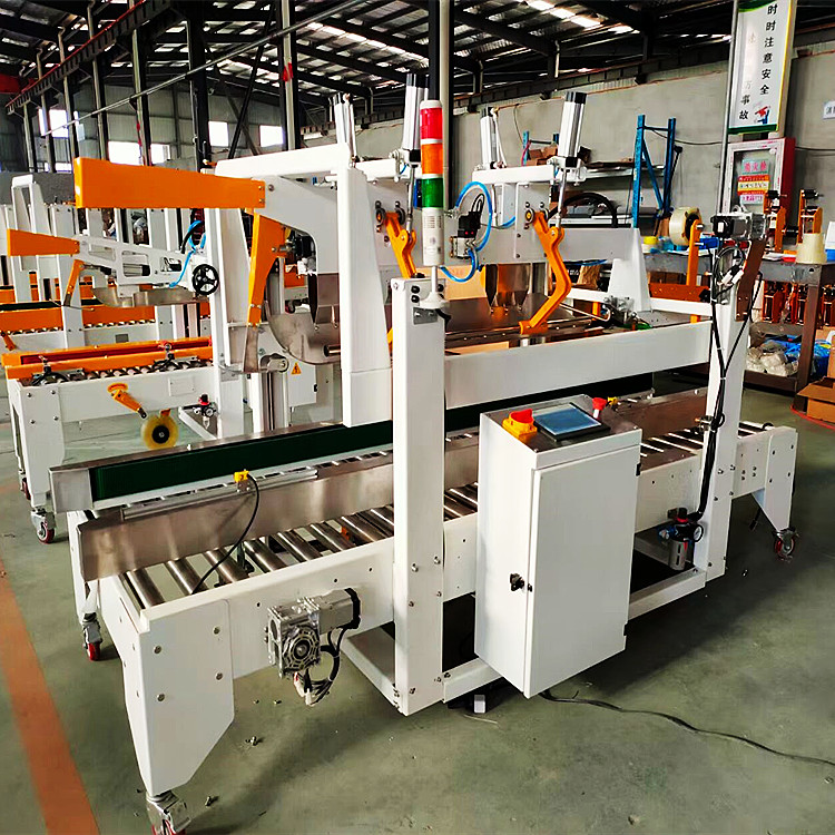 封箱機也可以配套其它設備組合成包裝流水線使用,封箱機設備采用進口元器件,先進技術制造,占地面積小,性能穩定,操作簡單,可根據紙箱規格,手工調節高度和高度,自動折紙箱上蓋,上下自動粘上膠帶,速度快,平整美觀,大大減少勞動力,提高生產效率,降低生產成本。青島諾邦以多年的技術經驗和優質的售后服務在行業內贏得普遍好評,銷售到各大經銷商及終端用戶。