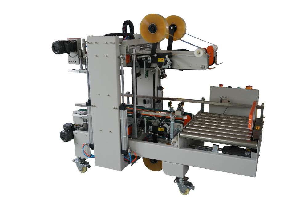 封箱機主要適用于紙箱的封箱包裝,既可單機作業(yè),也可與流水線配套使用,廣泛應用在家用電器、紡織、食品、百貨、醫(yī)藥、化工等行業(yè)。封箱機采用膠帶對紙箱封口,經(jīng)濟快速、容易調(diào)整,可一次完成上、下自動封箱動作,如采用印字膠帶,更可提高產(chǎn)品形象。